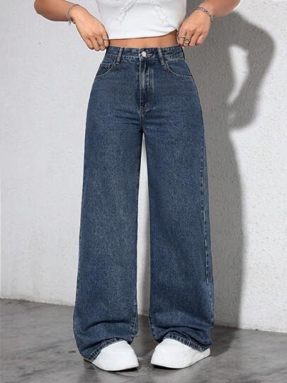 بنطلون جينز فضفاض بقصة رجلين واسعة