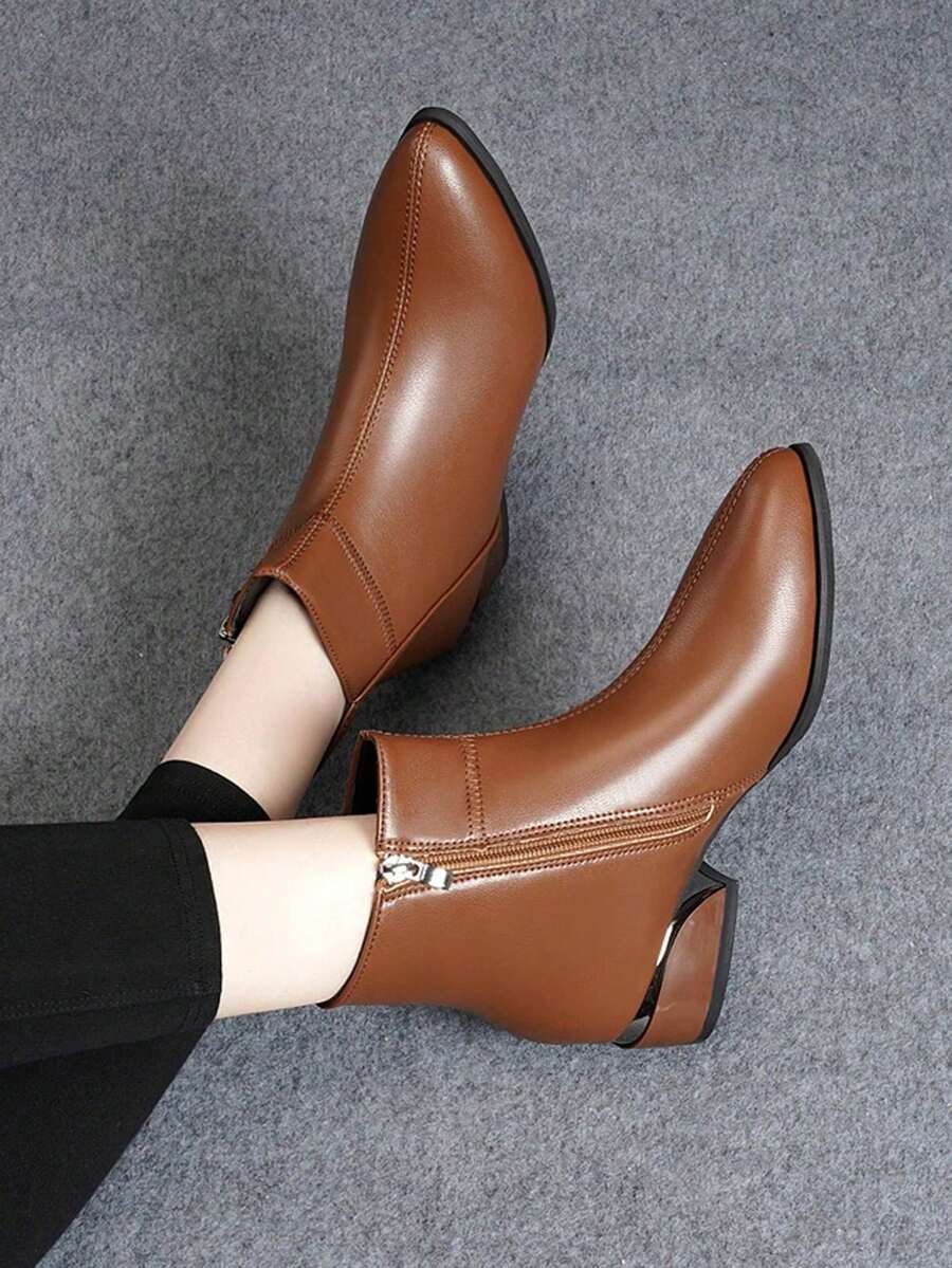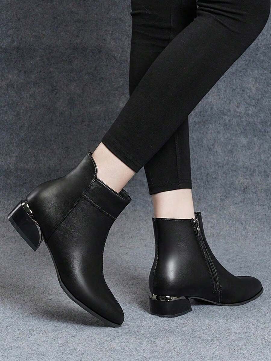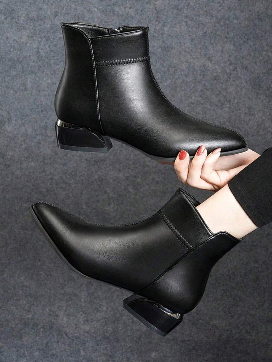 - اسم المنتج: بوت نسائية قصيرة للكاحل ذات كعب سميك