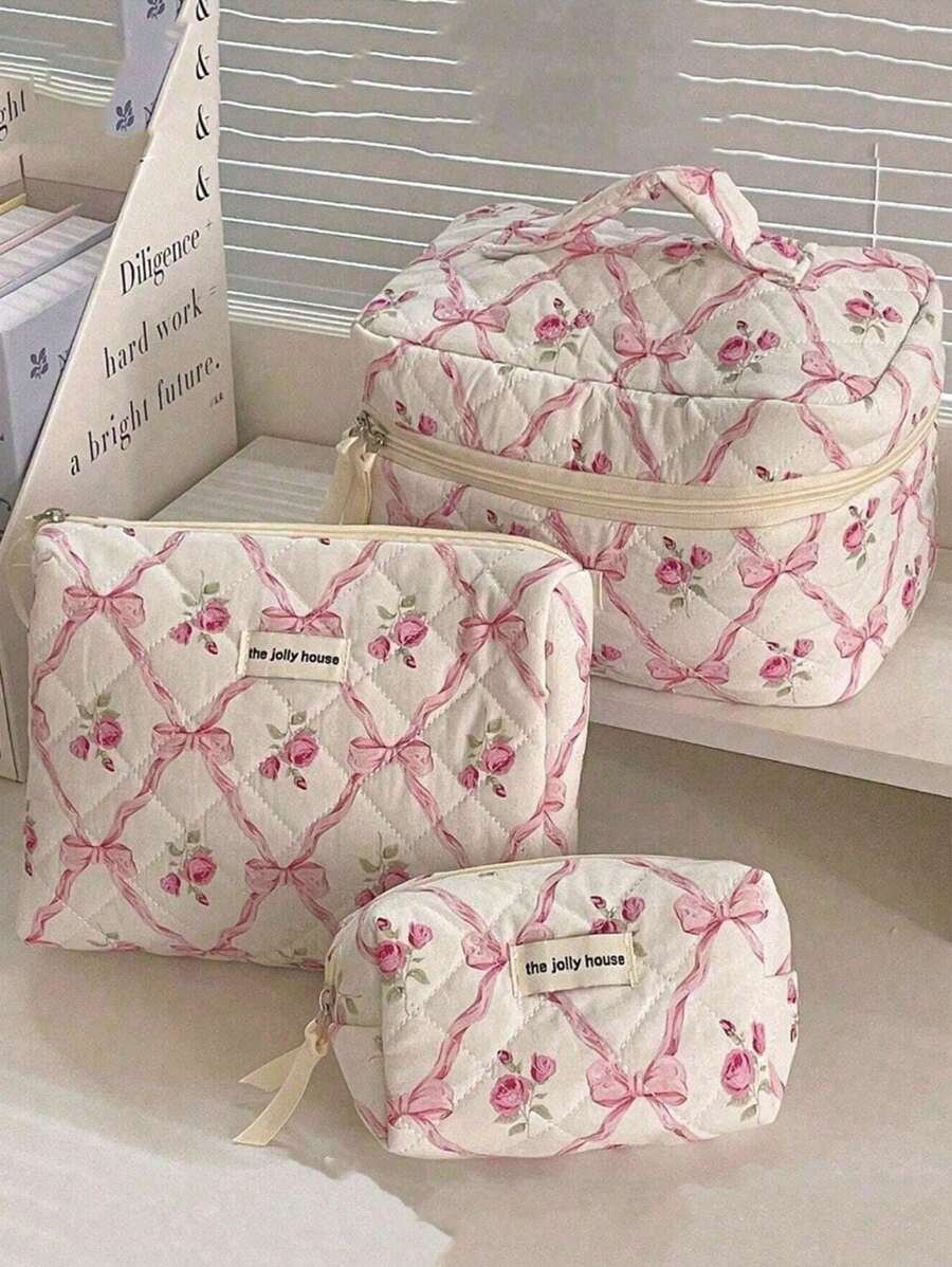 مجموعة حقائب تخزين مبطنة بتصميم الوردة