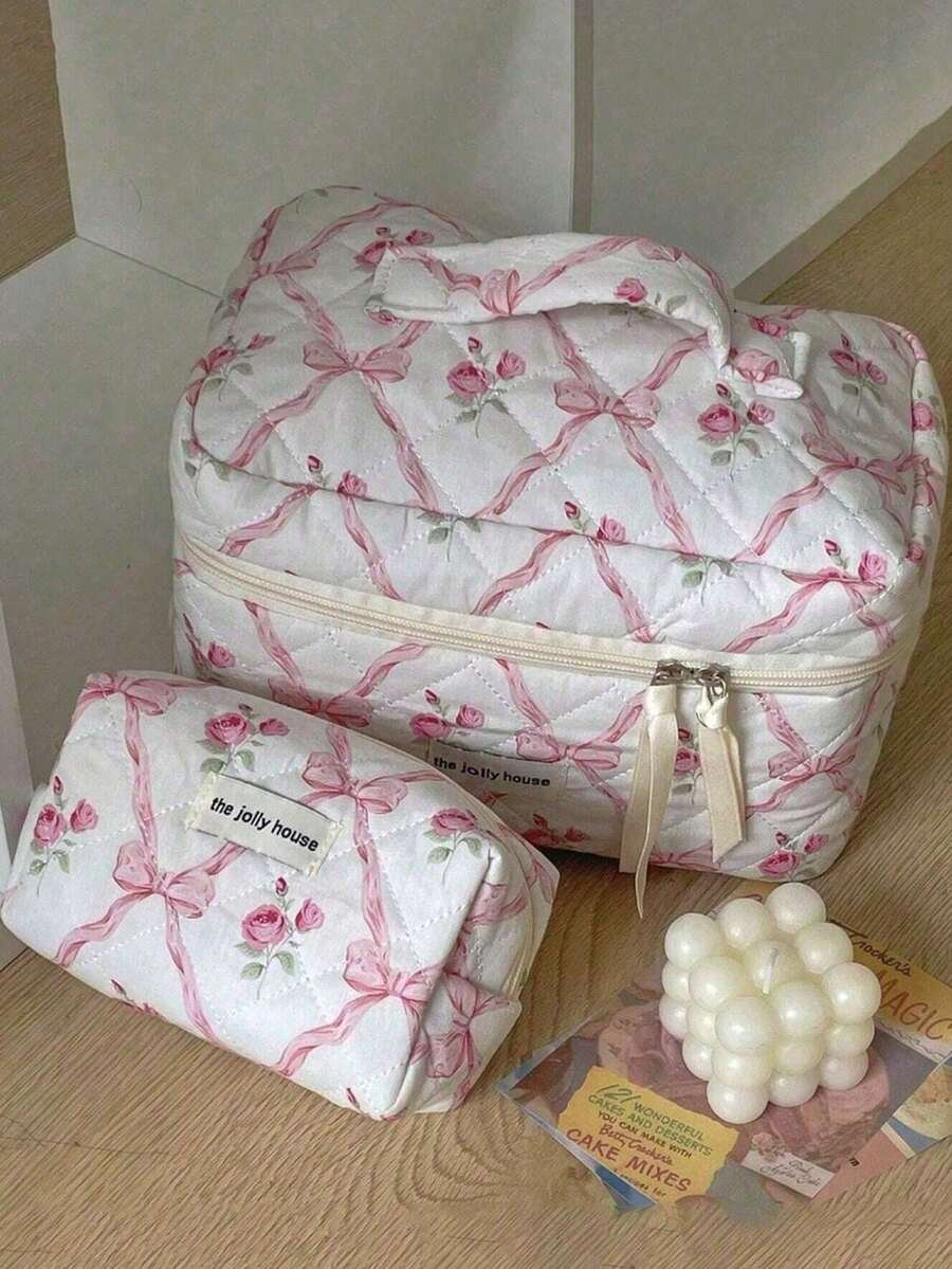 - اسم المنتج: مجموعة حقائب تخزين مبطنة بتصميم الوردة
