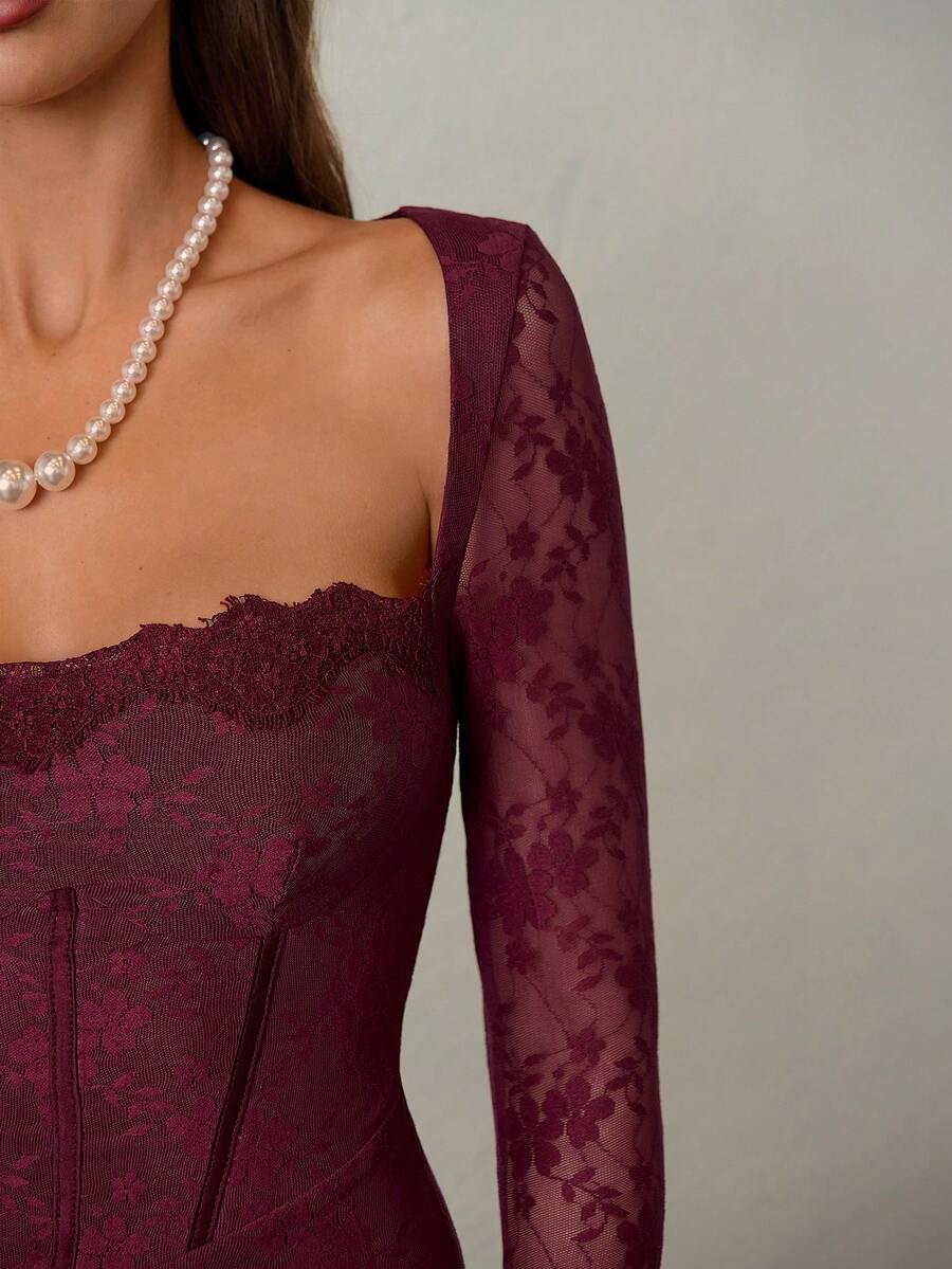 تألق في المناسبات الرسمية والمساء مع هذا الفستان الطويل والدانتيل الرائع. يتمتع بتصميمه الفريد بأكمام طويلة ورقبة مربعة، مما يضفي لمسة من الأناقة والجاذبية على إطلالتك. يبرز شكل الكُفة حورية البحر جمال قوامك بطريقة متميزة، بينما توفر البطانة المبطنة شعورًا بالراحة والثقة.