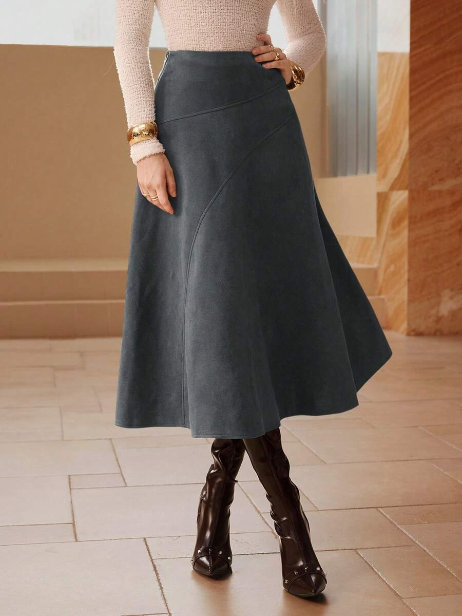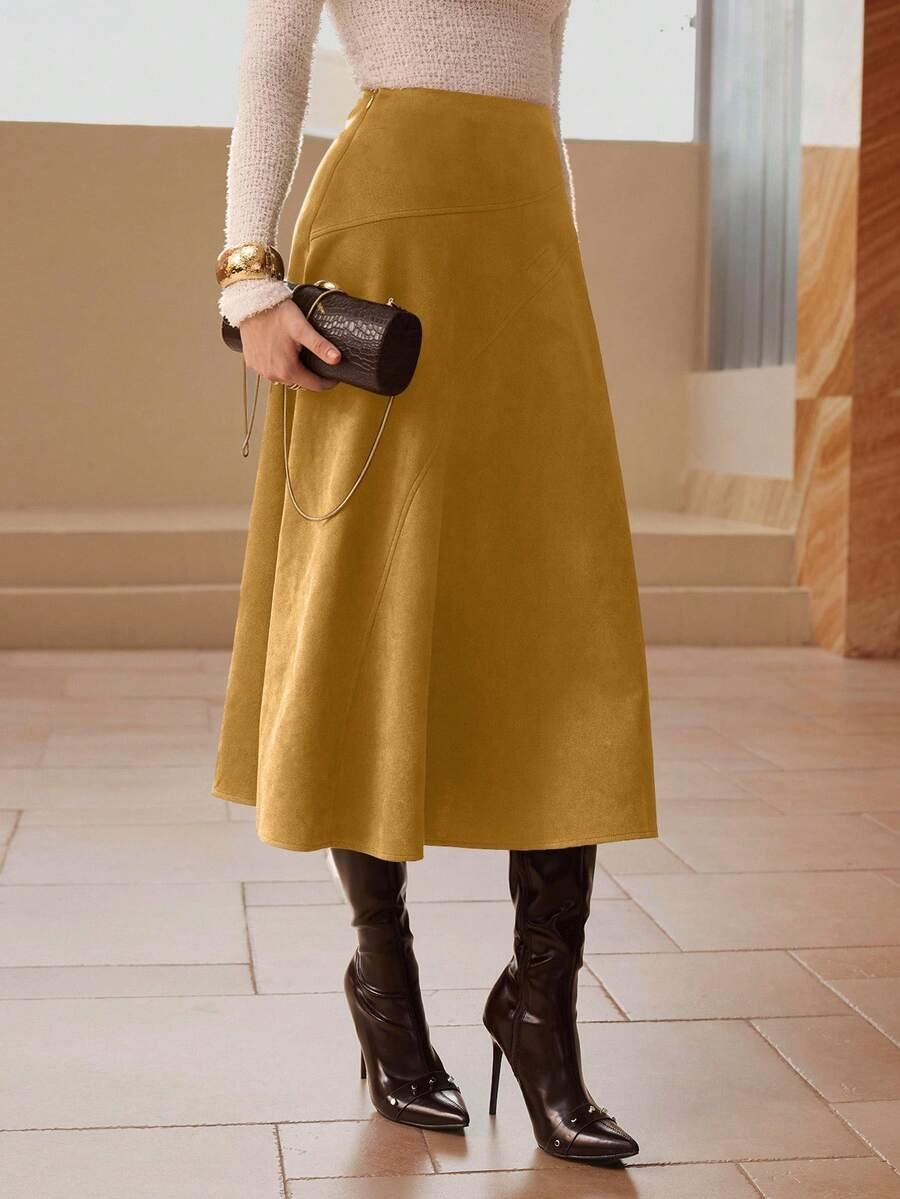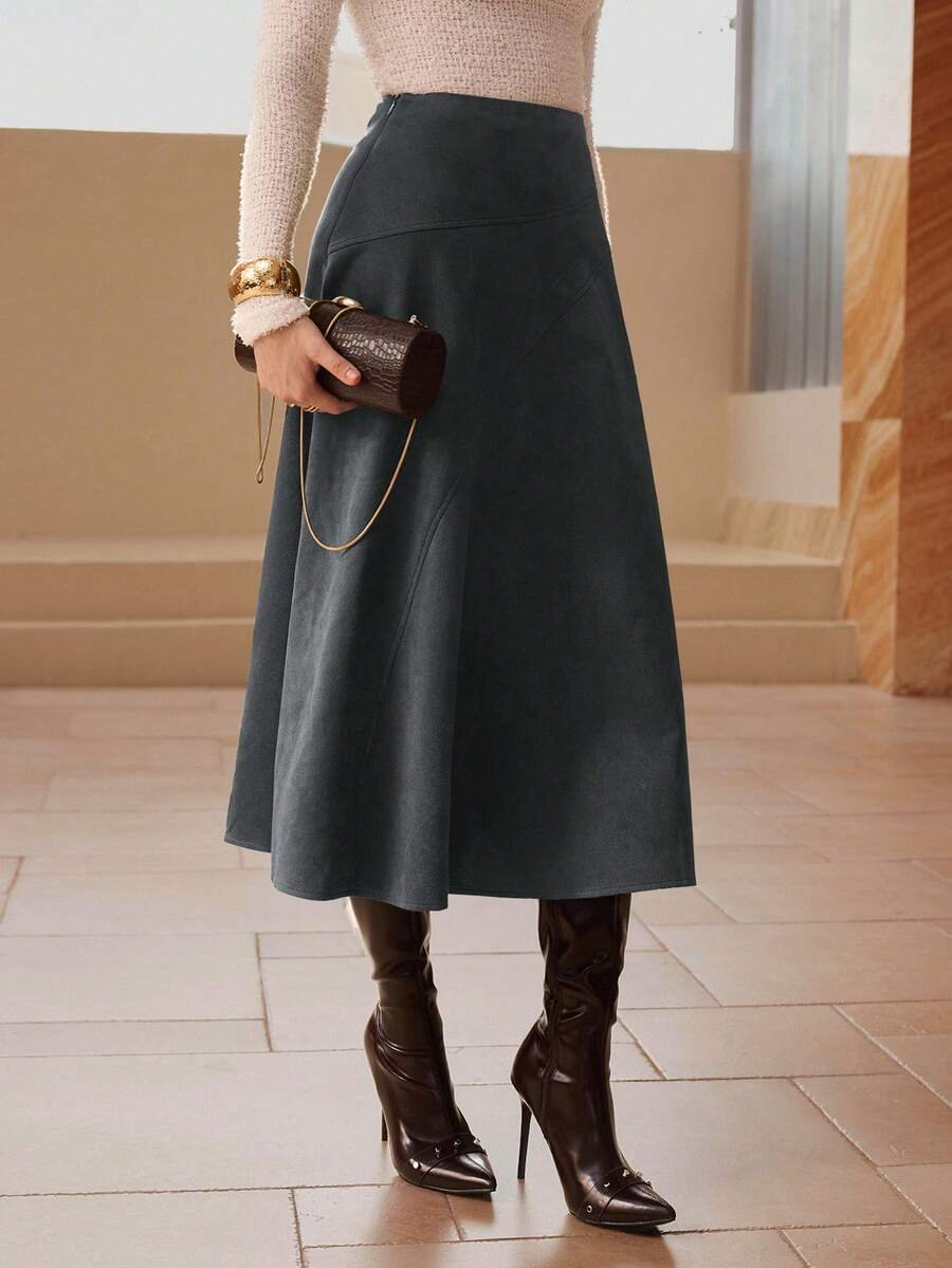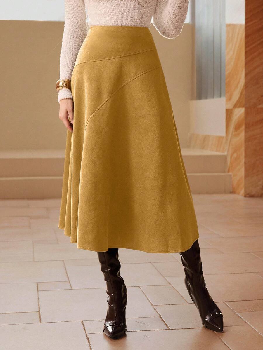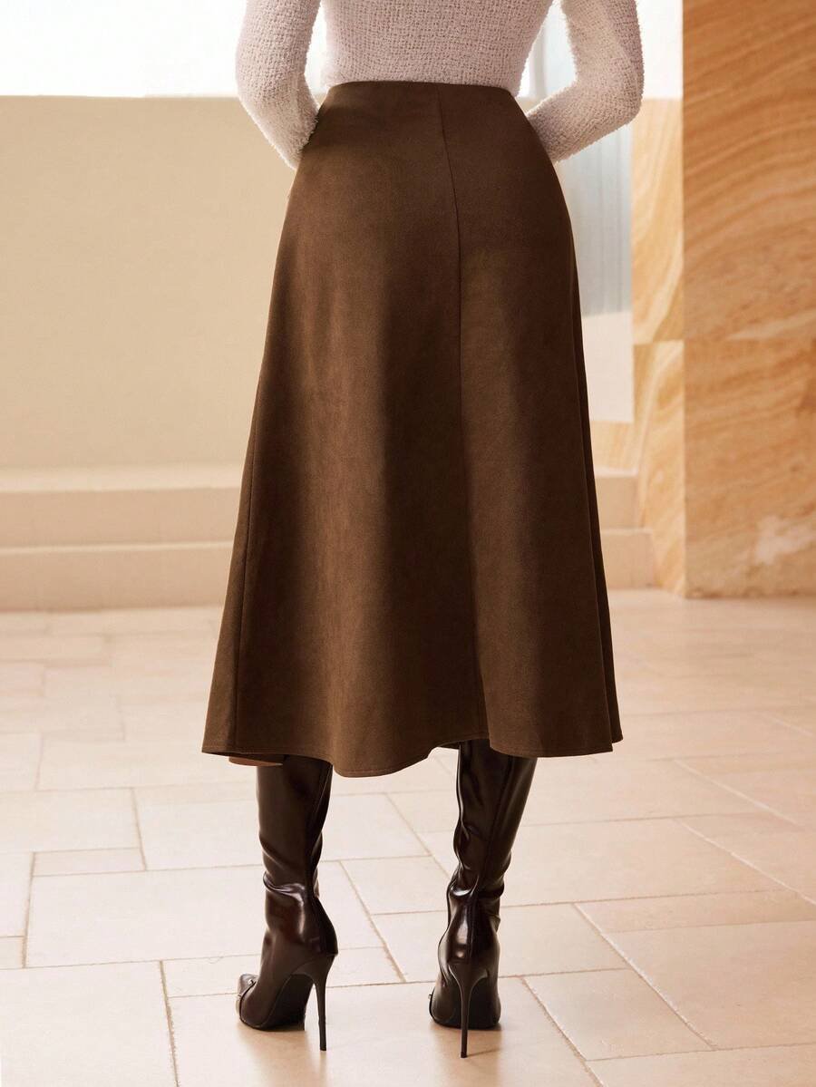 تنورة طويلة أنيقة من الجلد المدبوغ