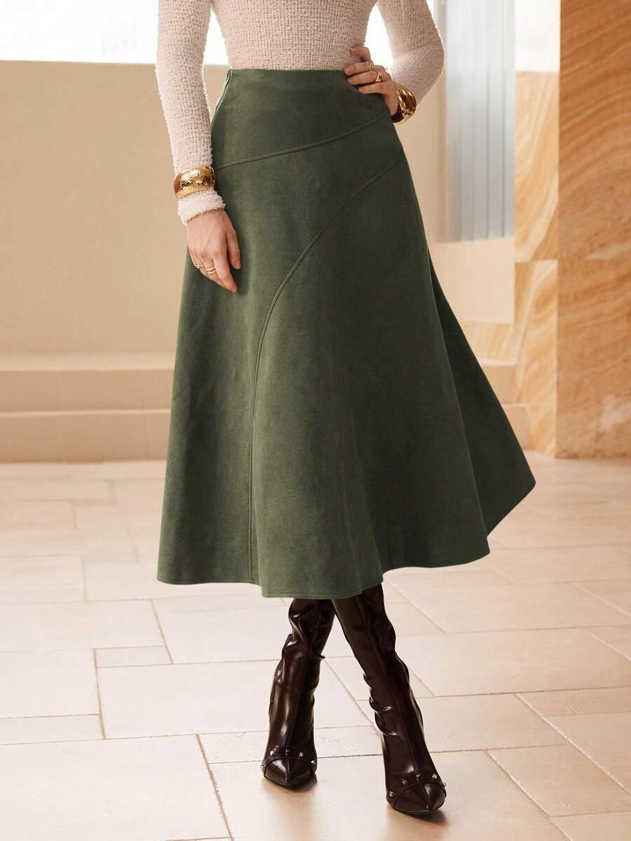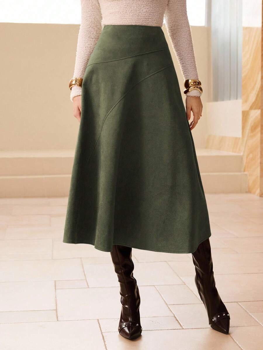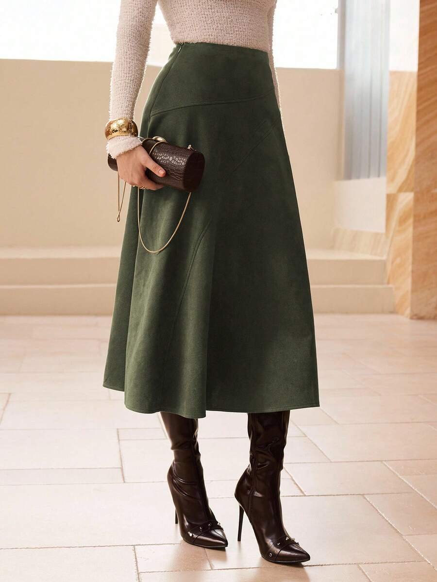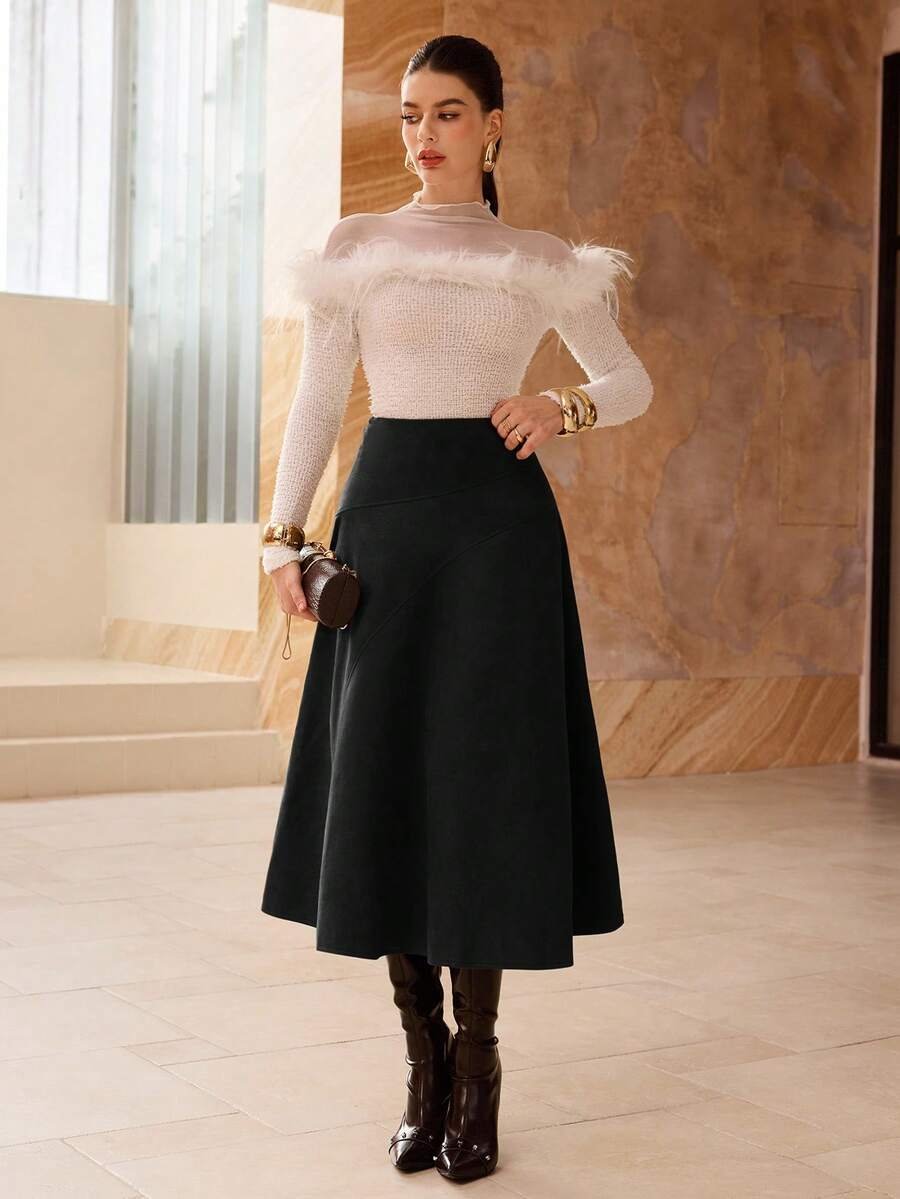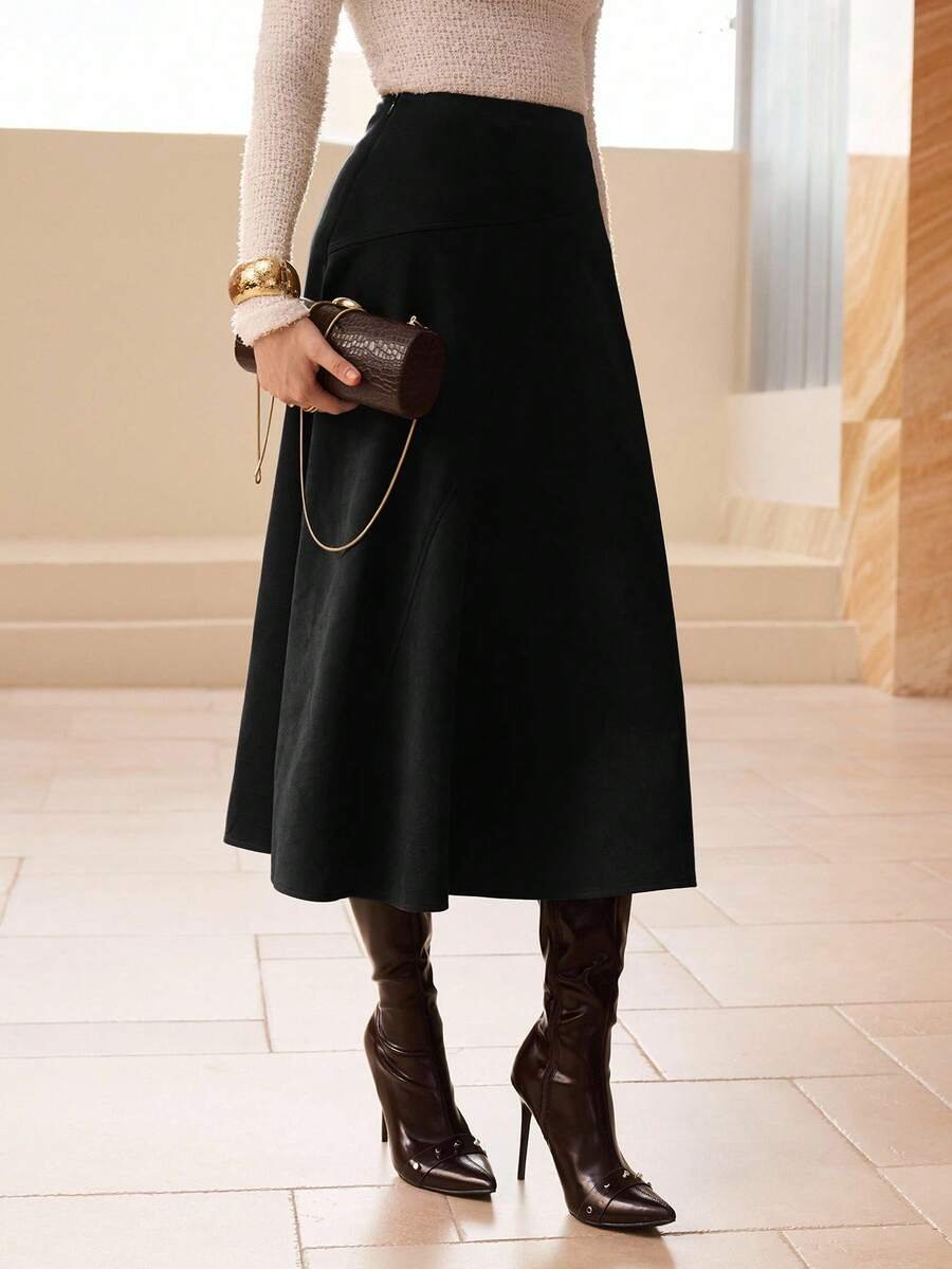 تنورة طويلة أنيقة من الجلد المدبوغ