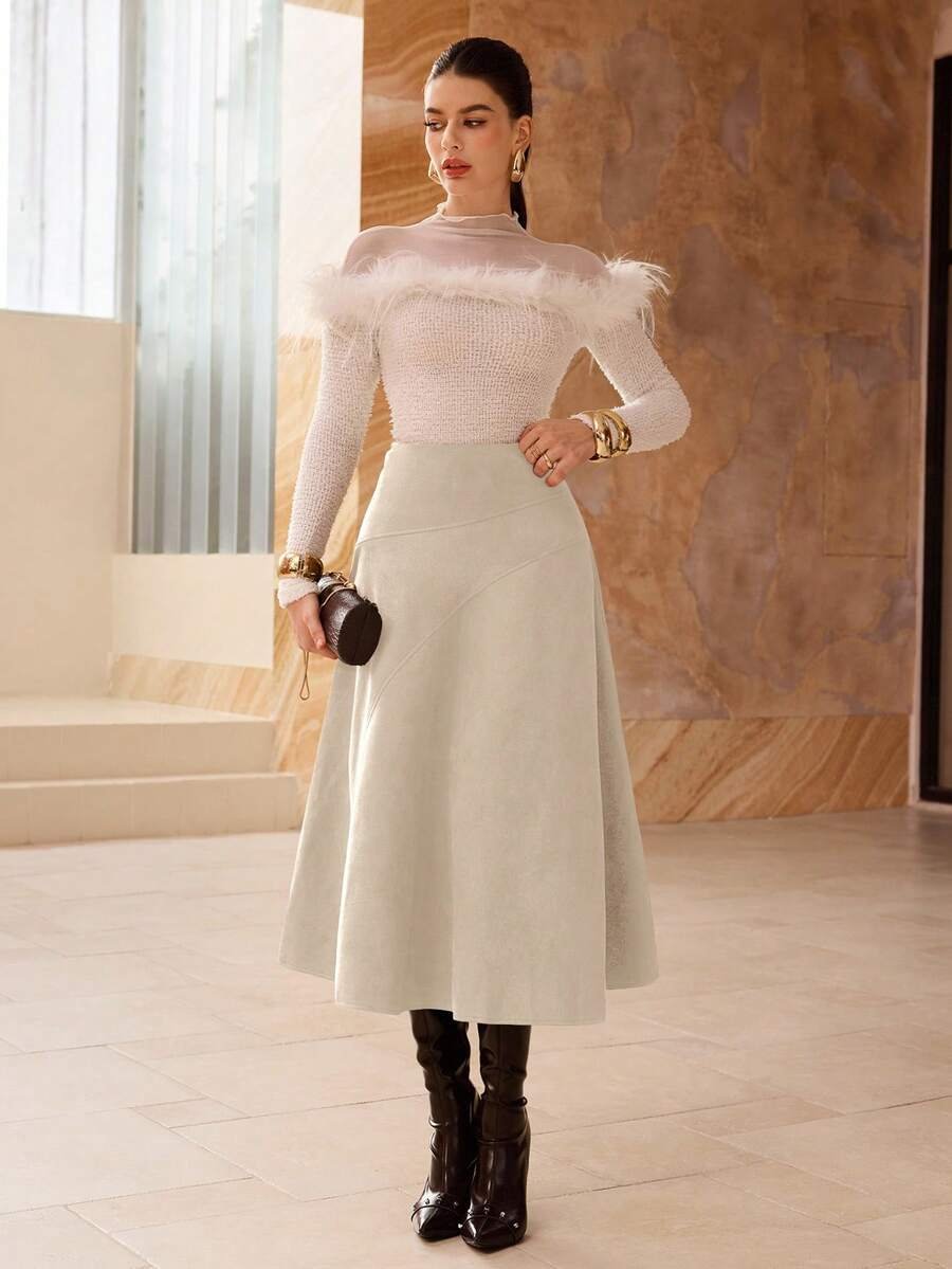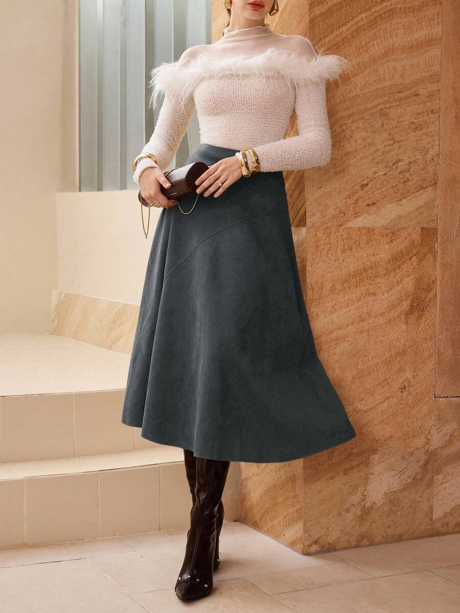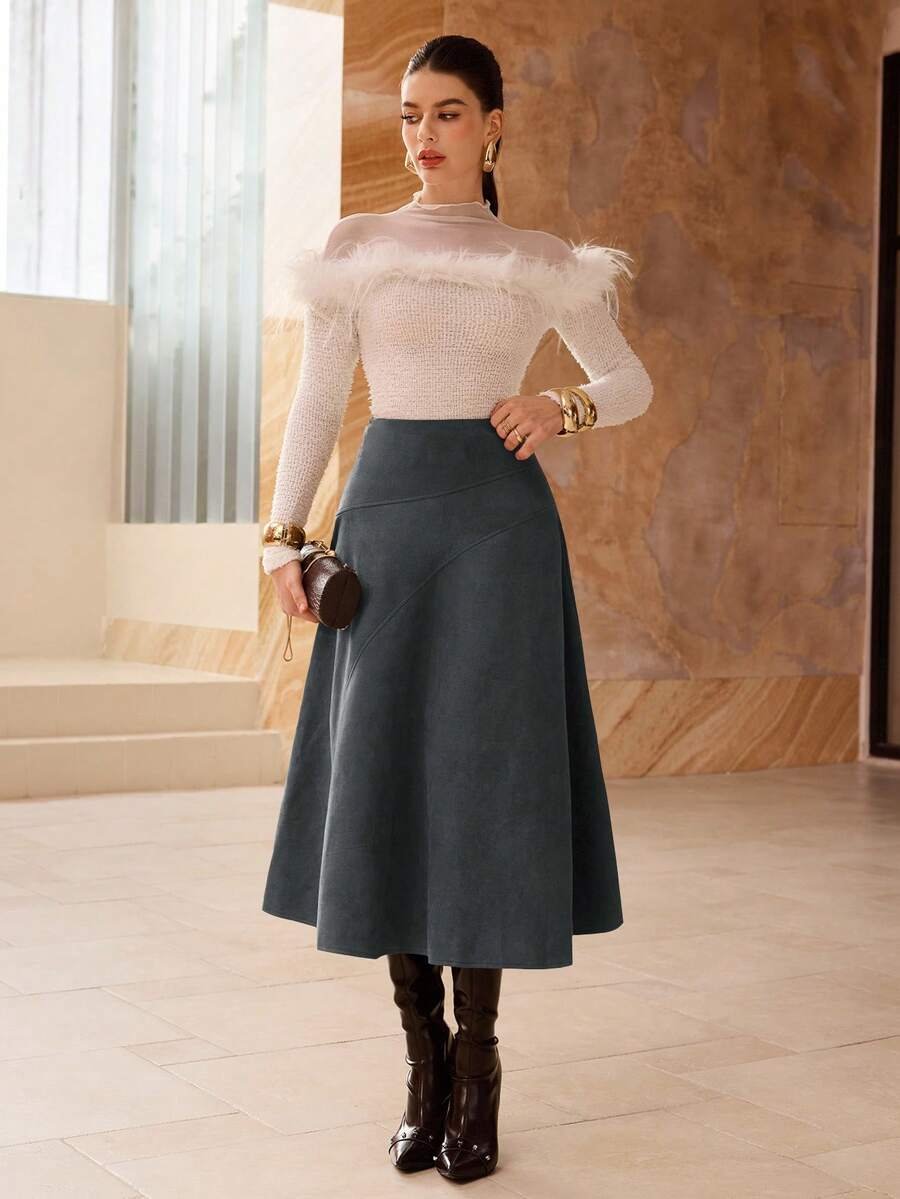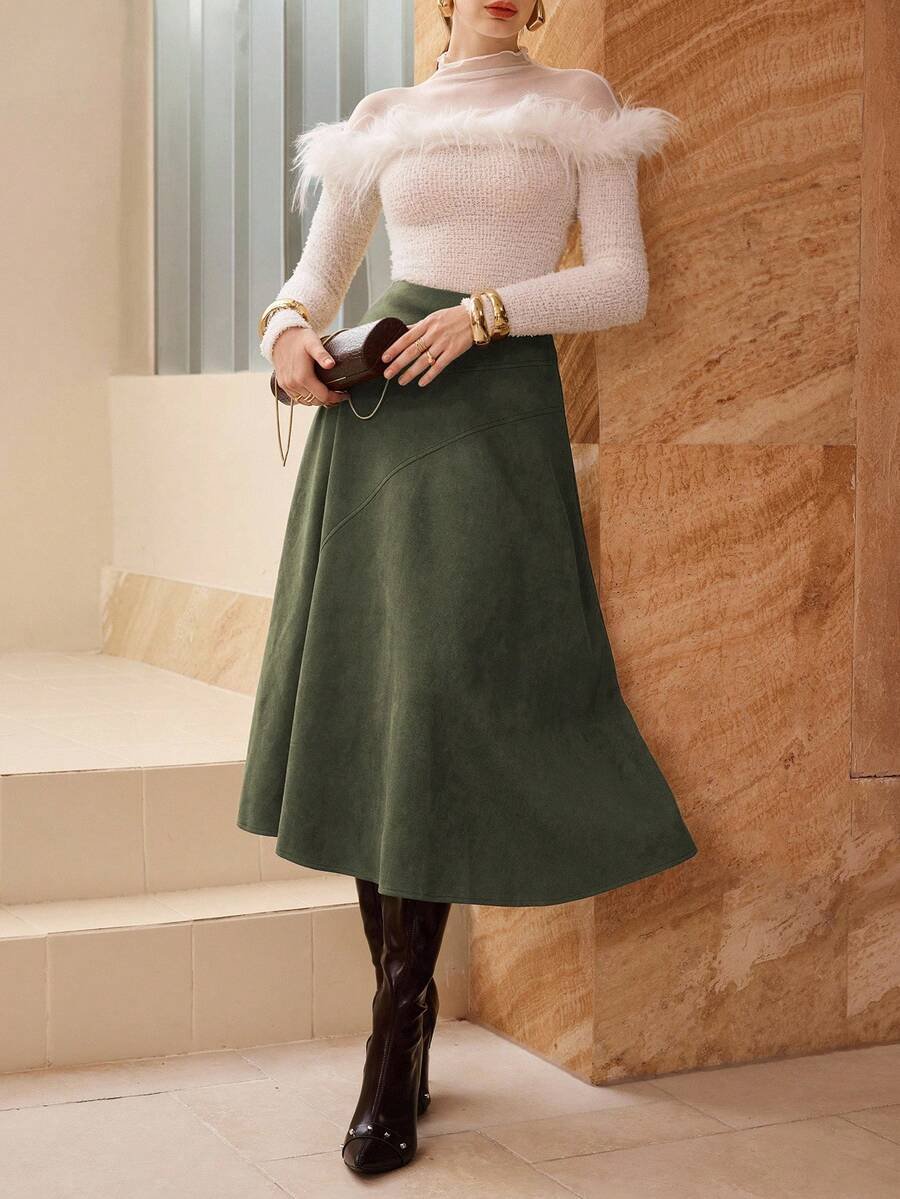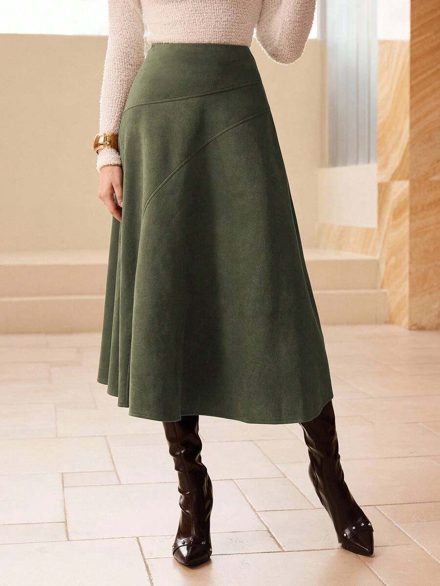 تنورة طويلة أنيقة من الجلد المدبوغ