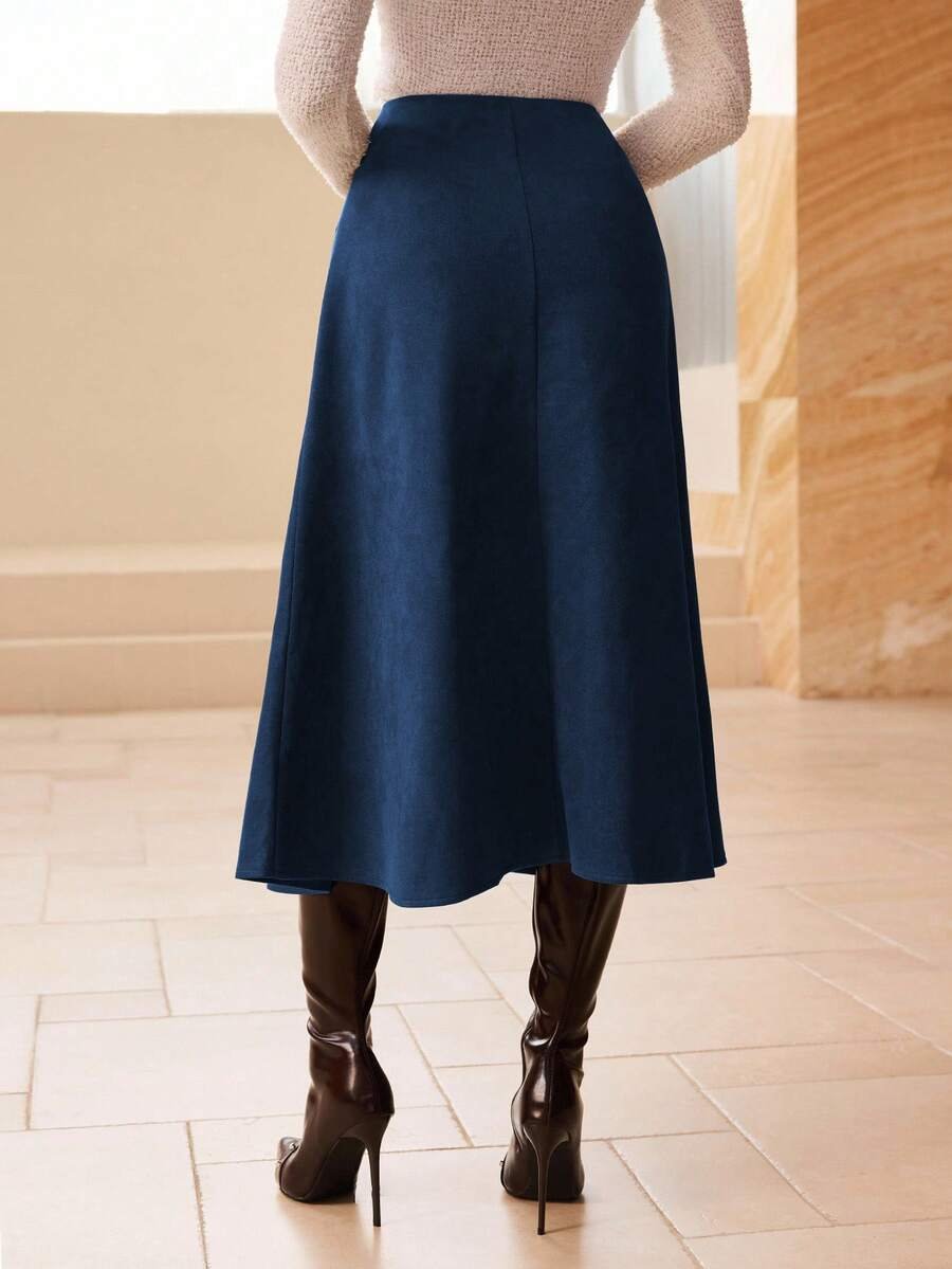 إكتشفي أناقة التفاصيل مع هذه التنورة الطويلة المصنوعة من الجلد المدبوغ، التي تمزج بين التصميم الجذاب والراحة. تتمتع بتصميم صافٍ ونمط A، مما يمنحك مظهرًا متوازنًا وجذابًا في مختلف المناسبات.