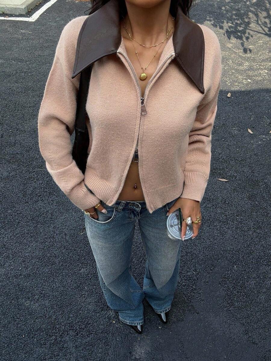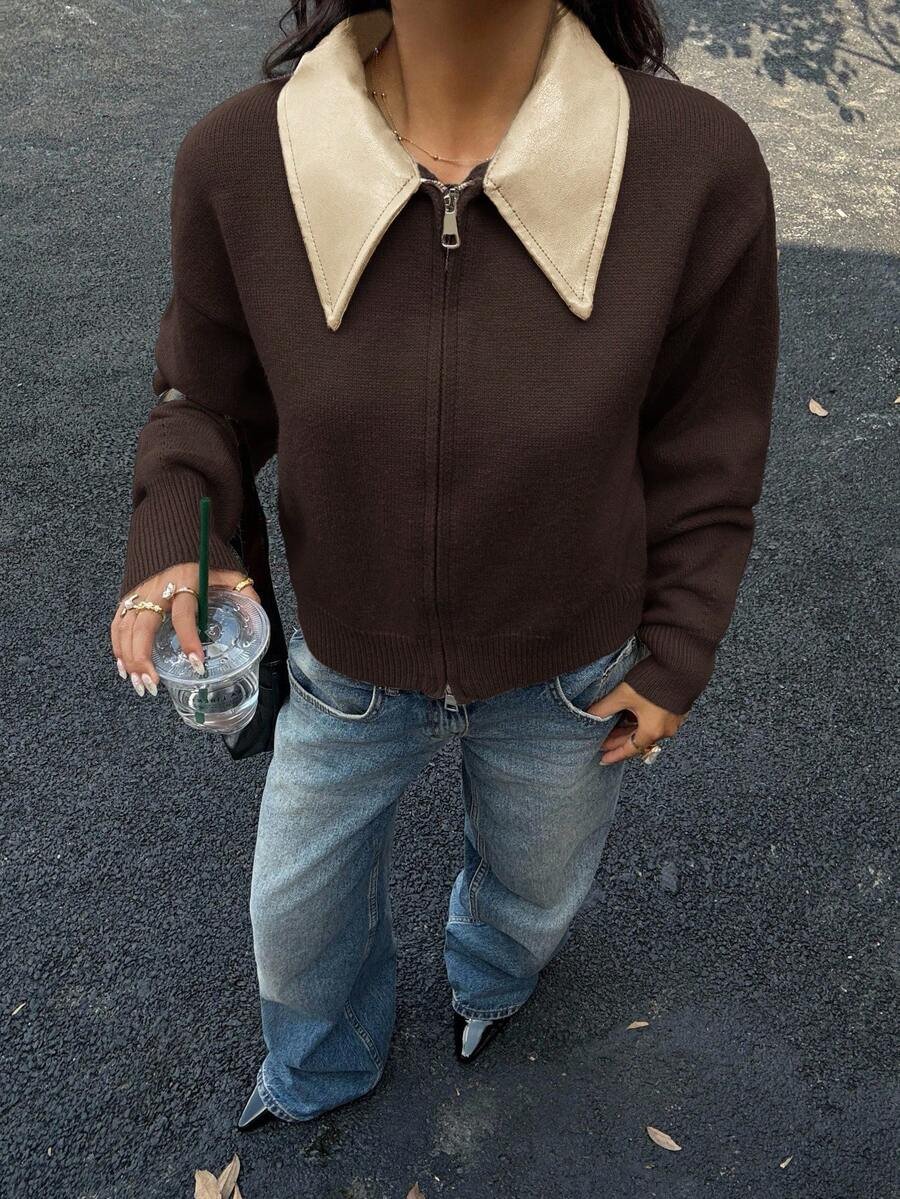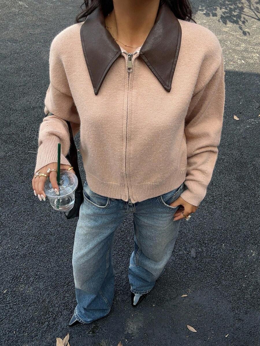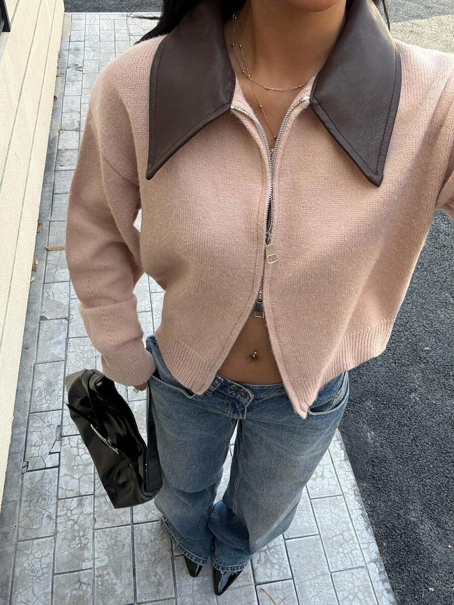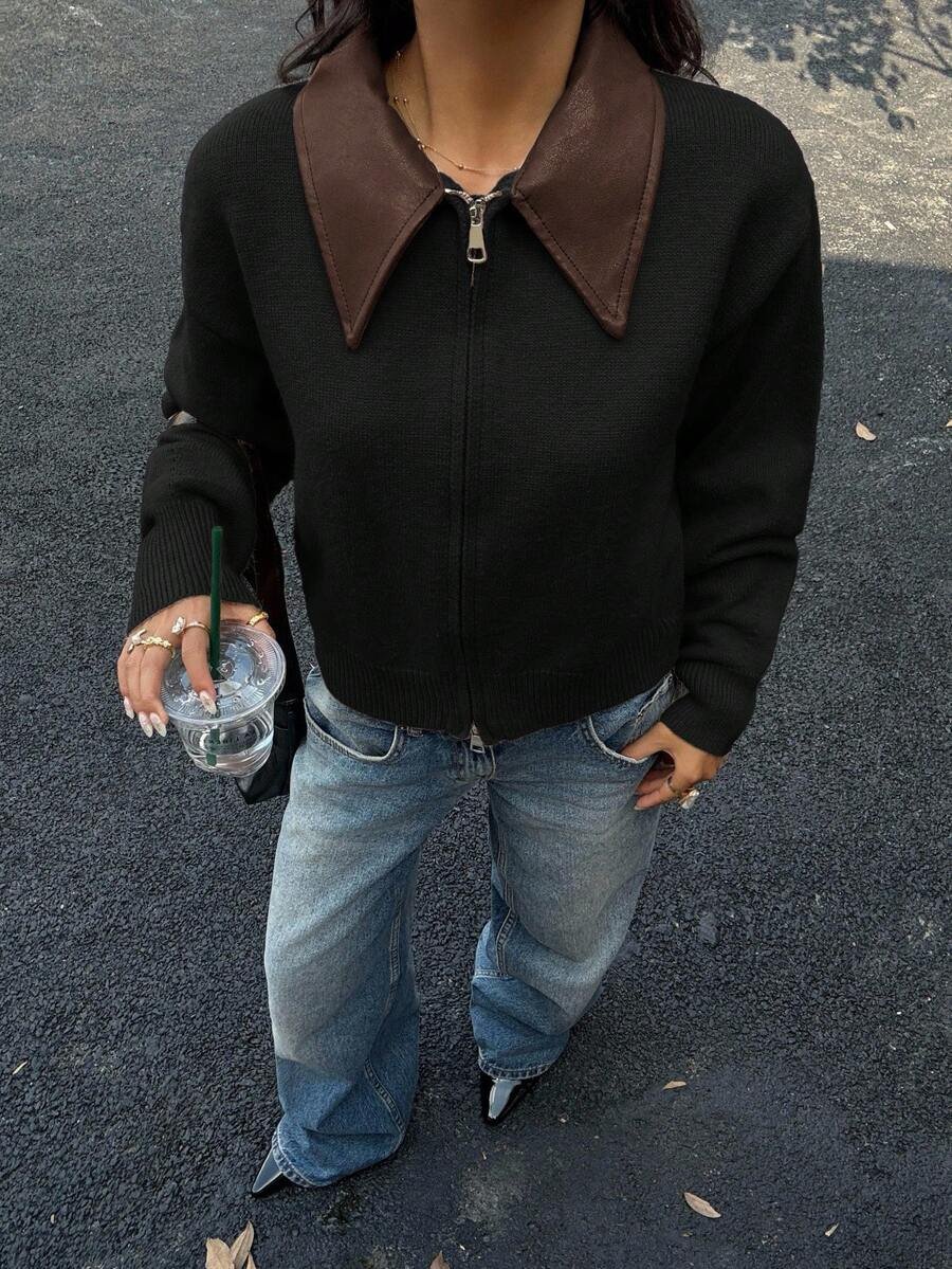 - اسم المنتج: جاكت ذو ياقة جلد
