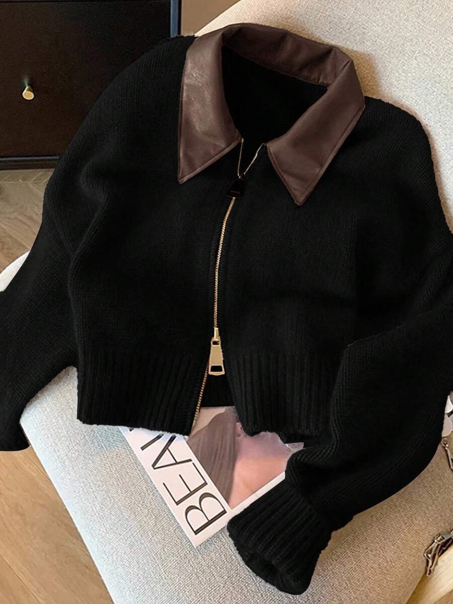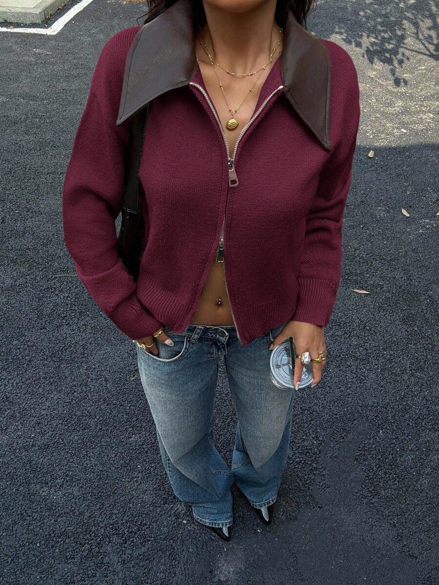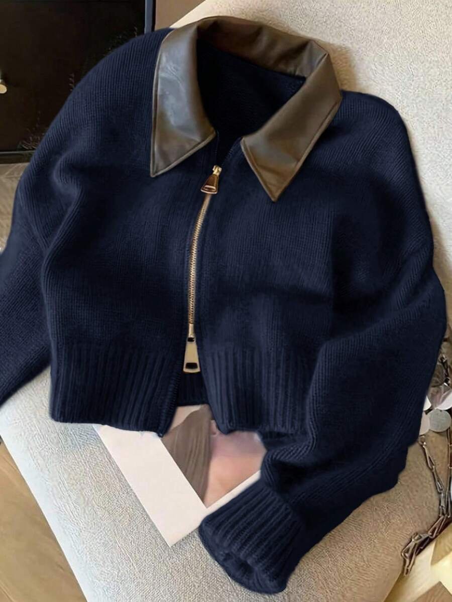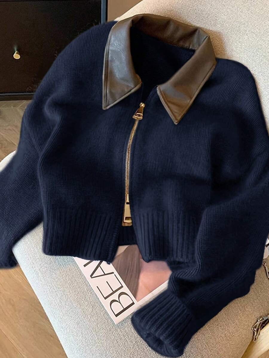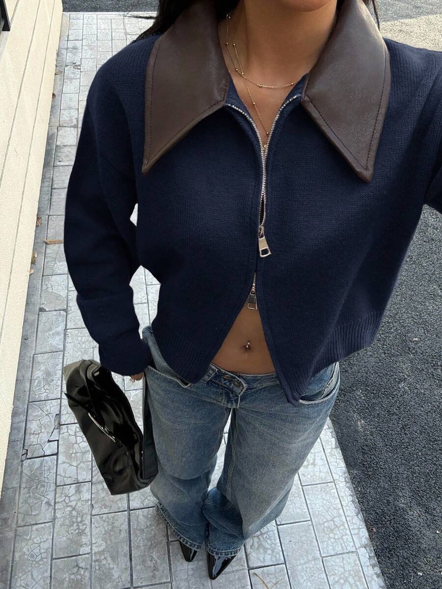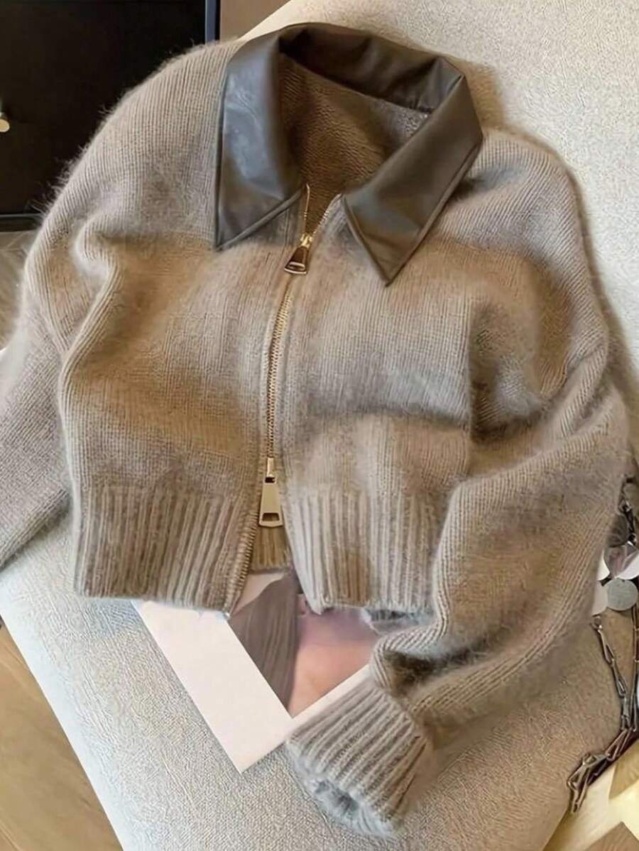 - اسم المنتج: جاكت ذو ياقة جلد