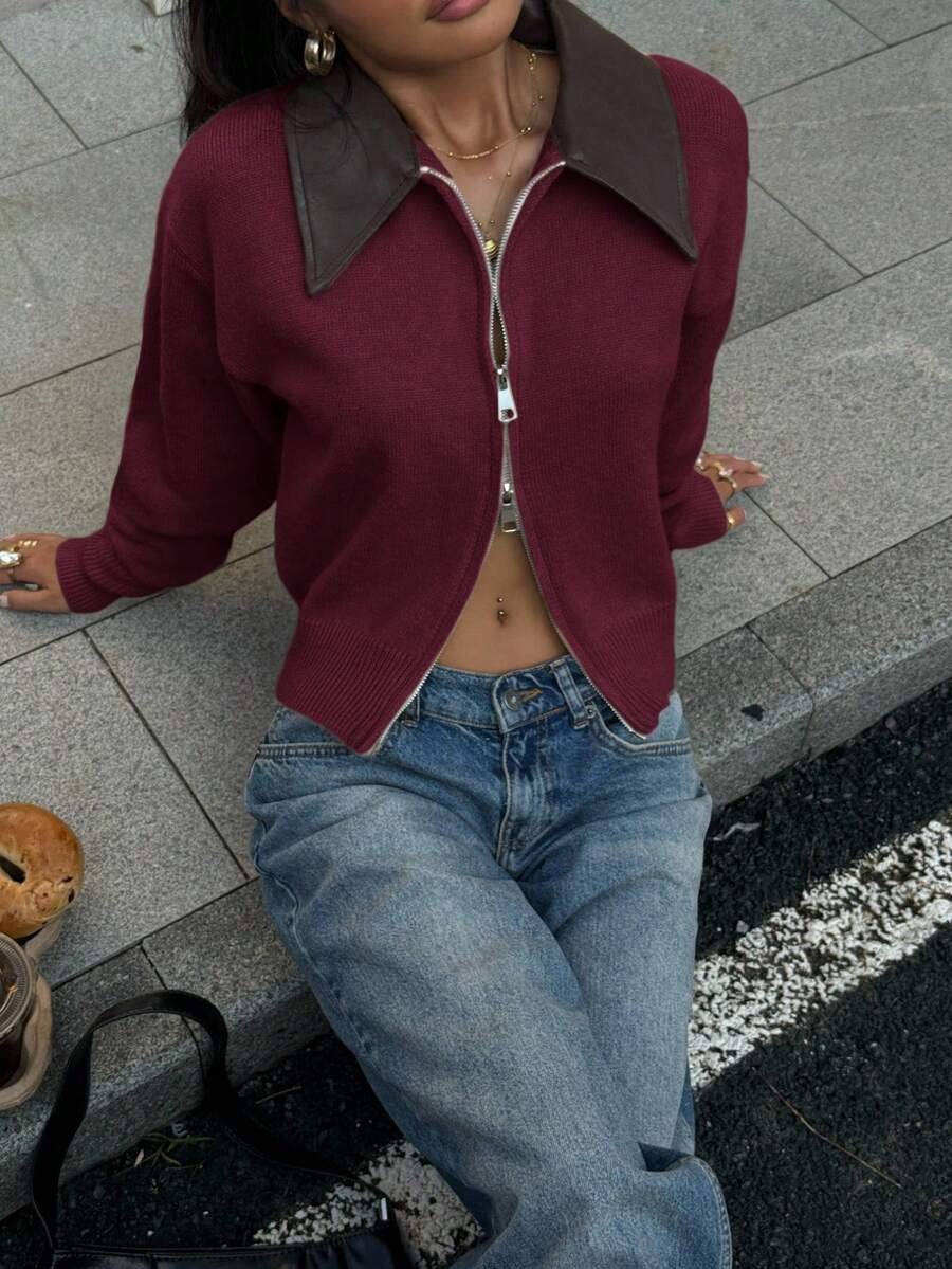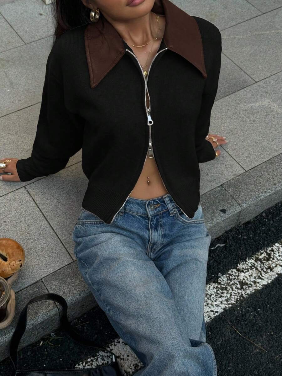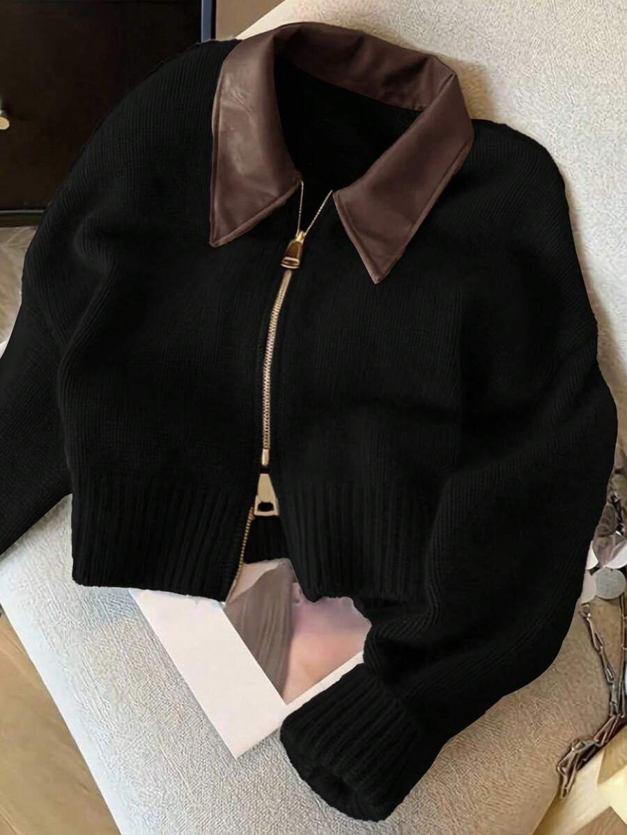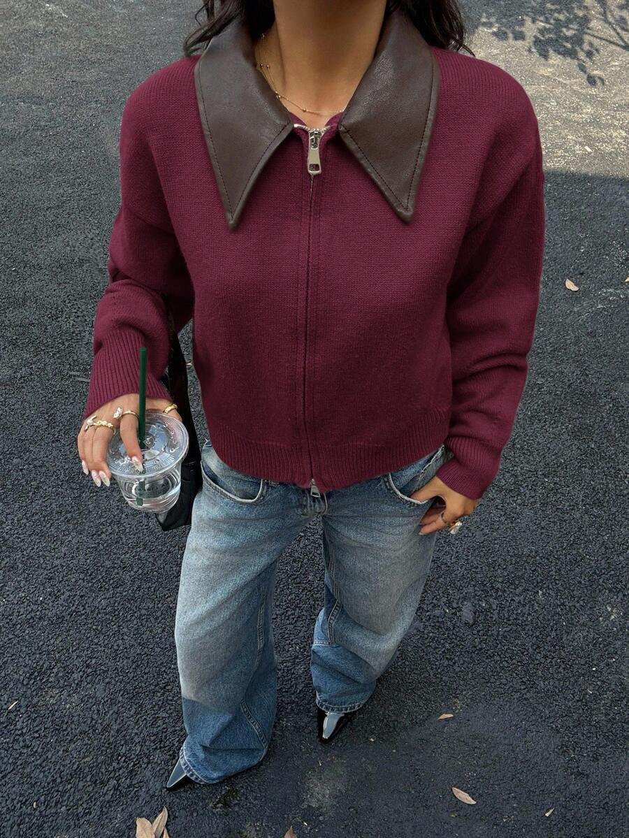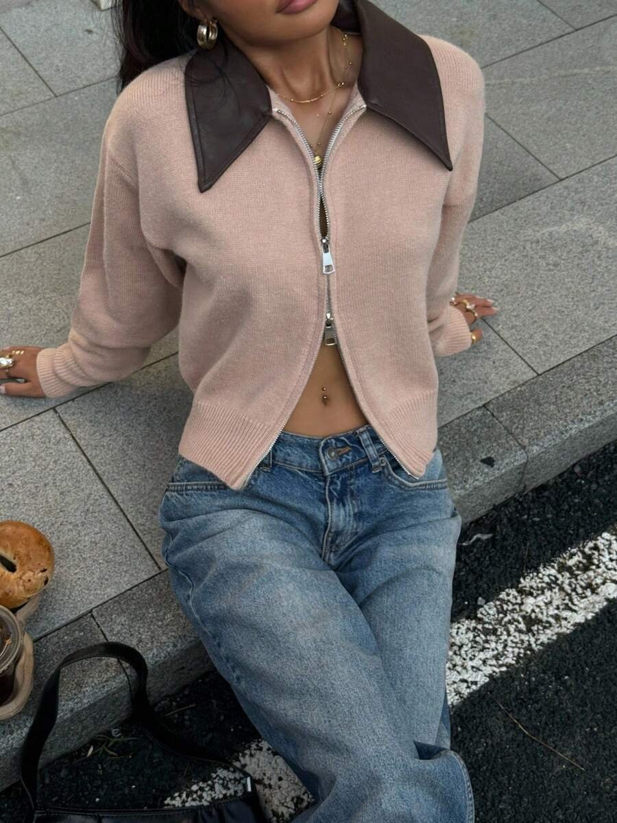 - اسم المنتج: جاكت ذو ياقة جلد