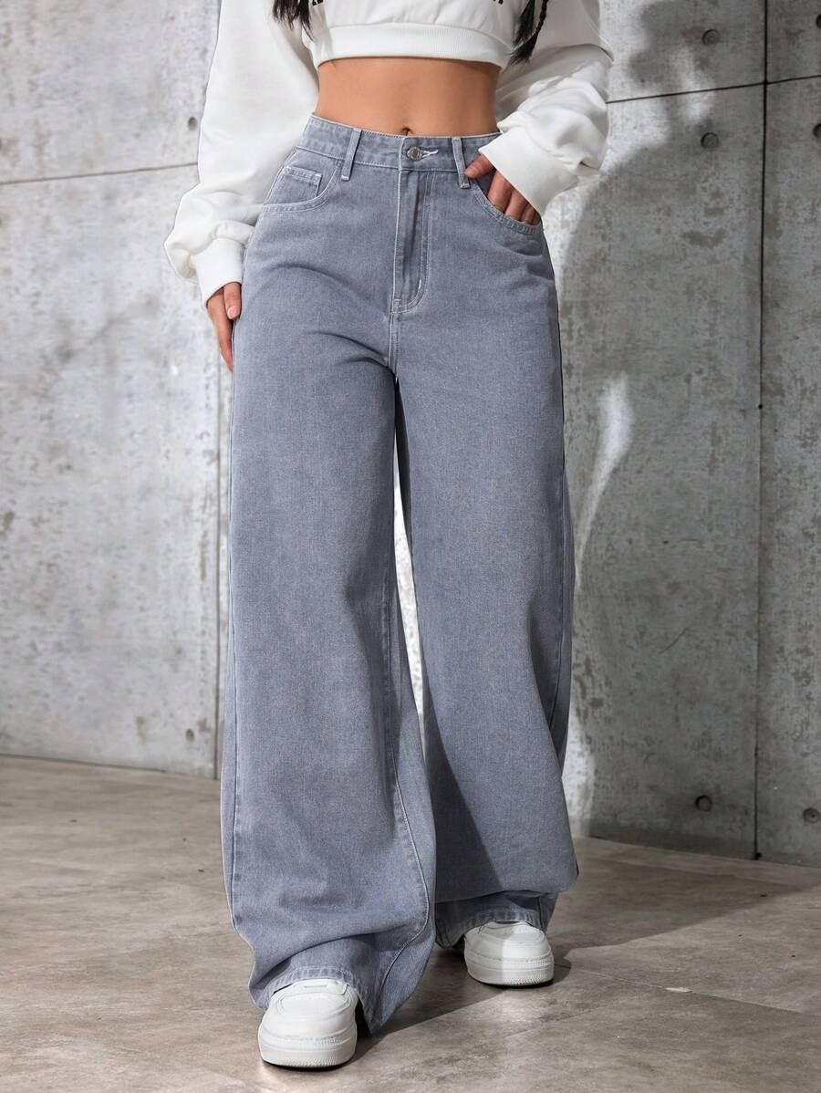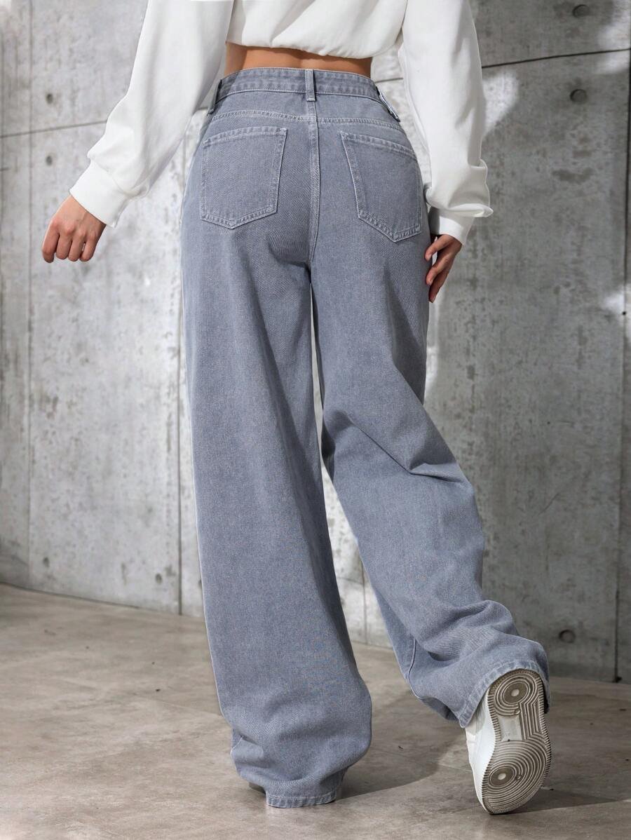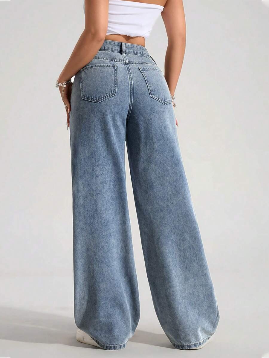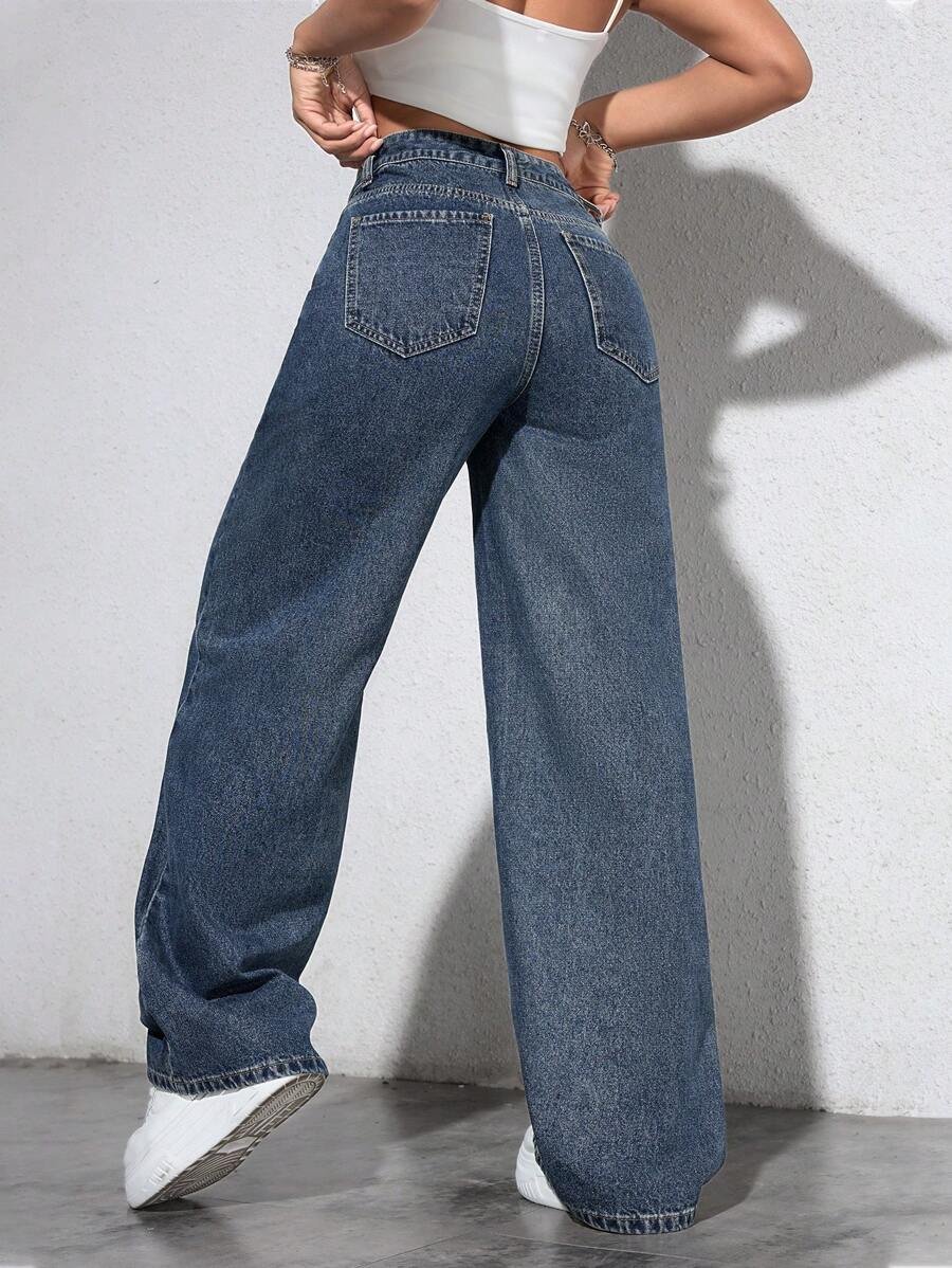- اسم المنتج: بنطلون جينز فضفاض بقصة رجلين واسعة