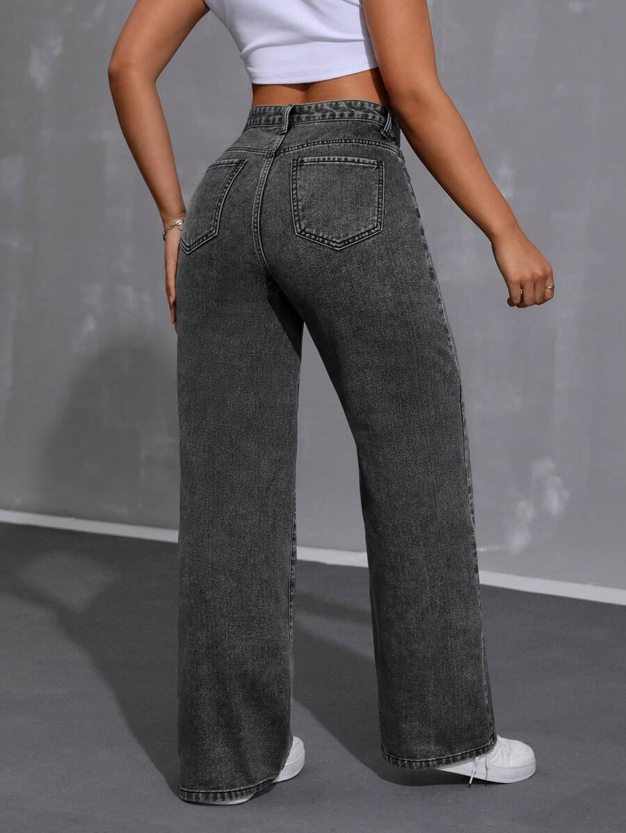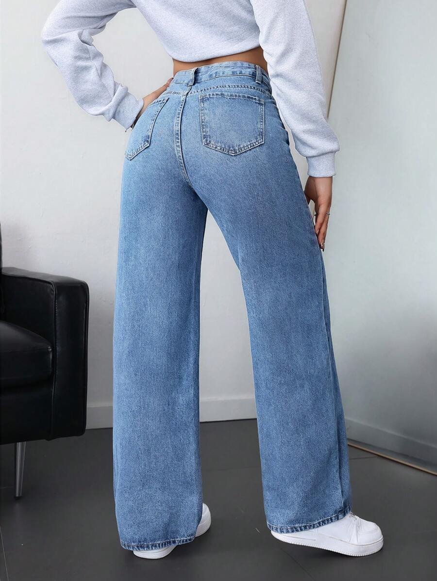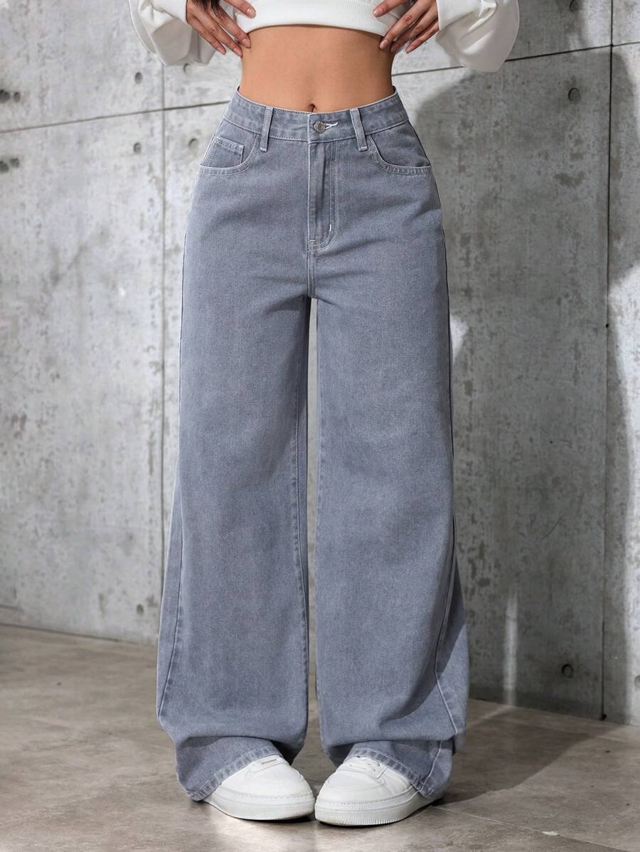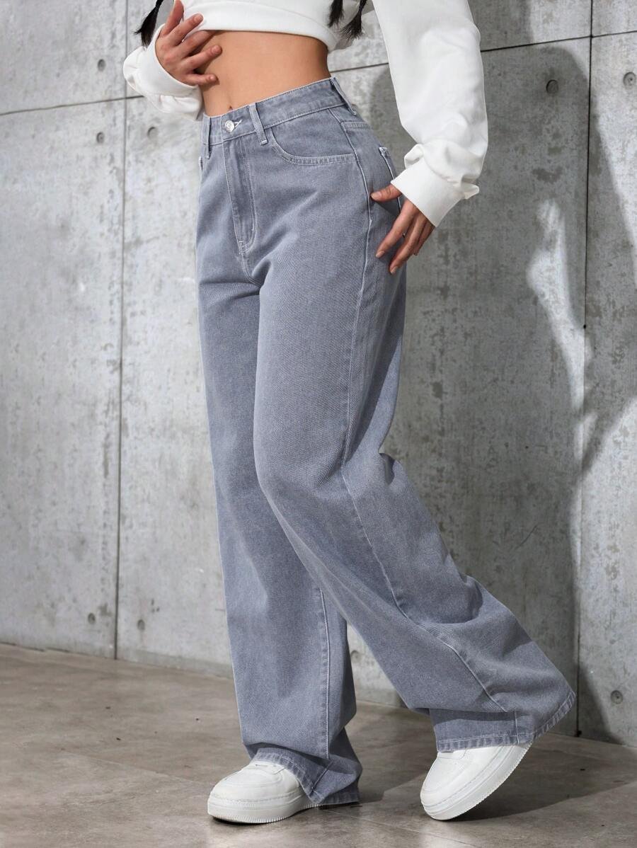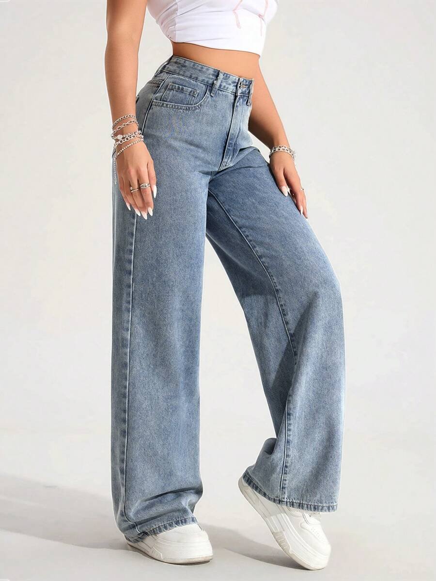 - اسم المنتج: بنطلون جينز فضفاض بقصة رجلين واسعة