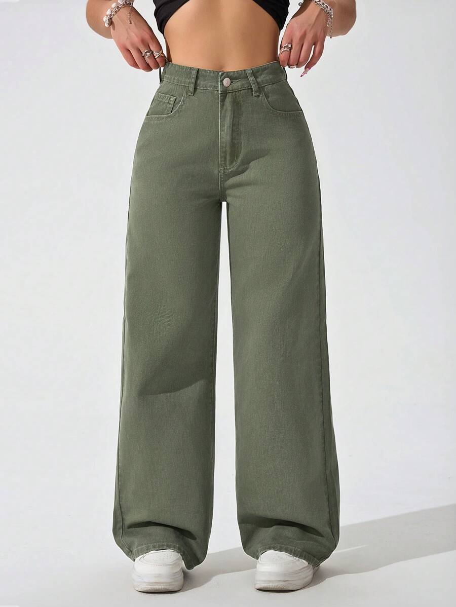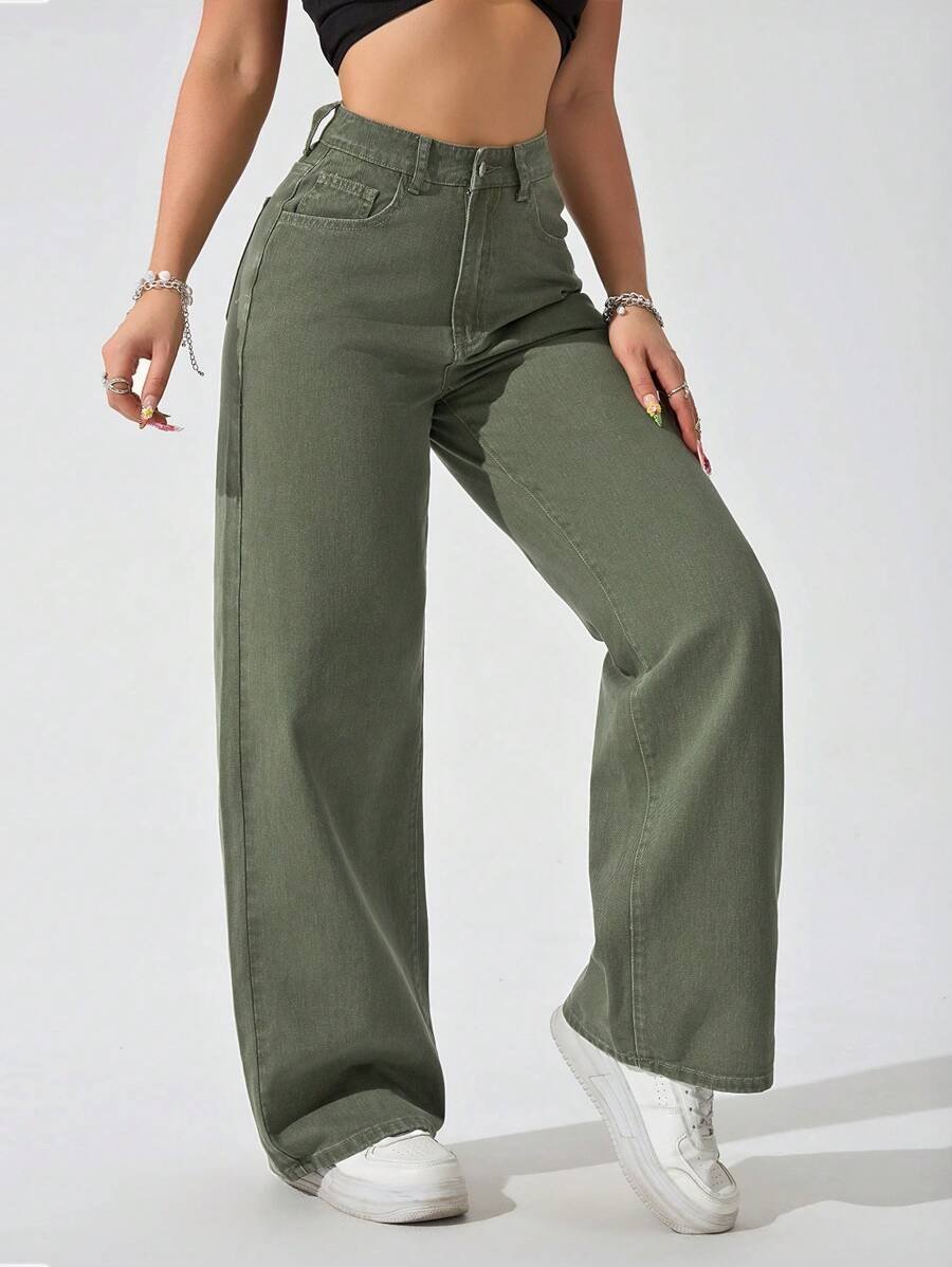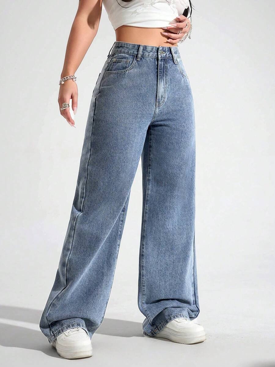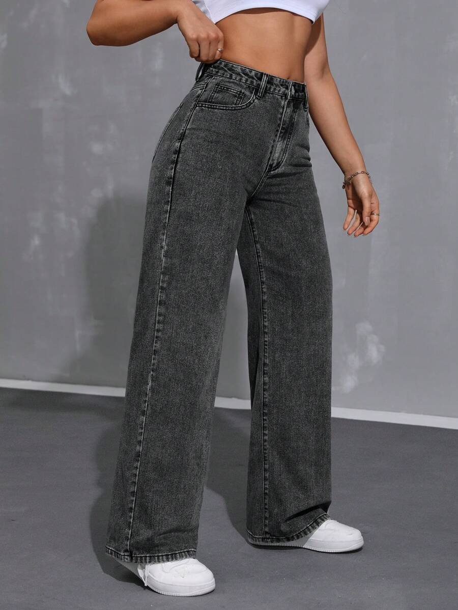 - اسم المنتج: بنطلون جينز فضفاض بقصة رجلين واسعة