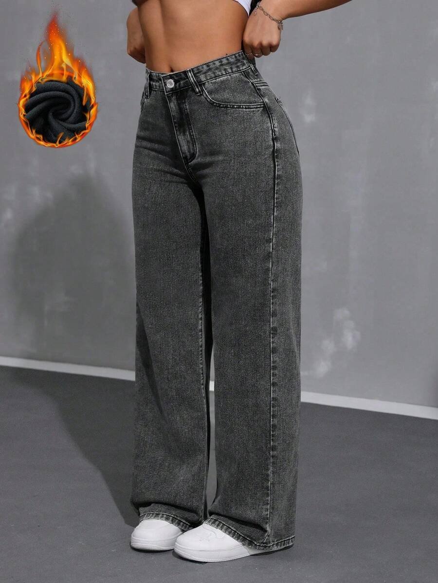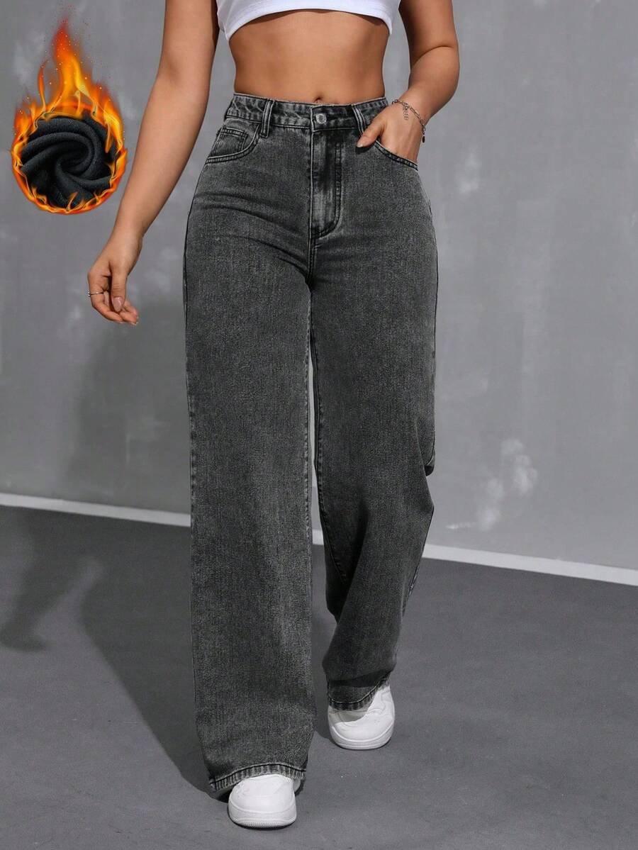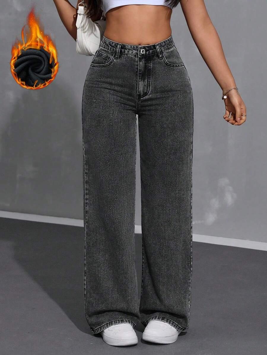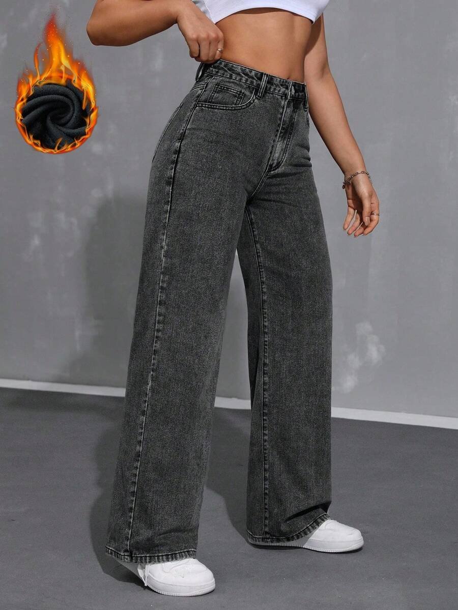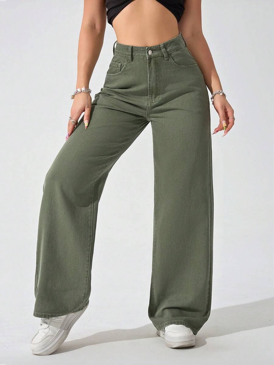 - اسم المنتج: بنطلون جينز فضفاض بقصة رجلين واسعة