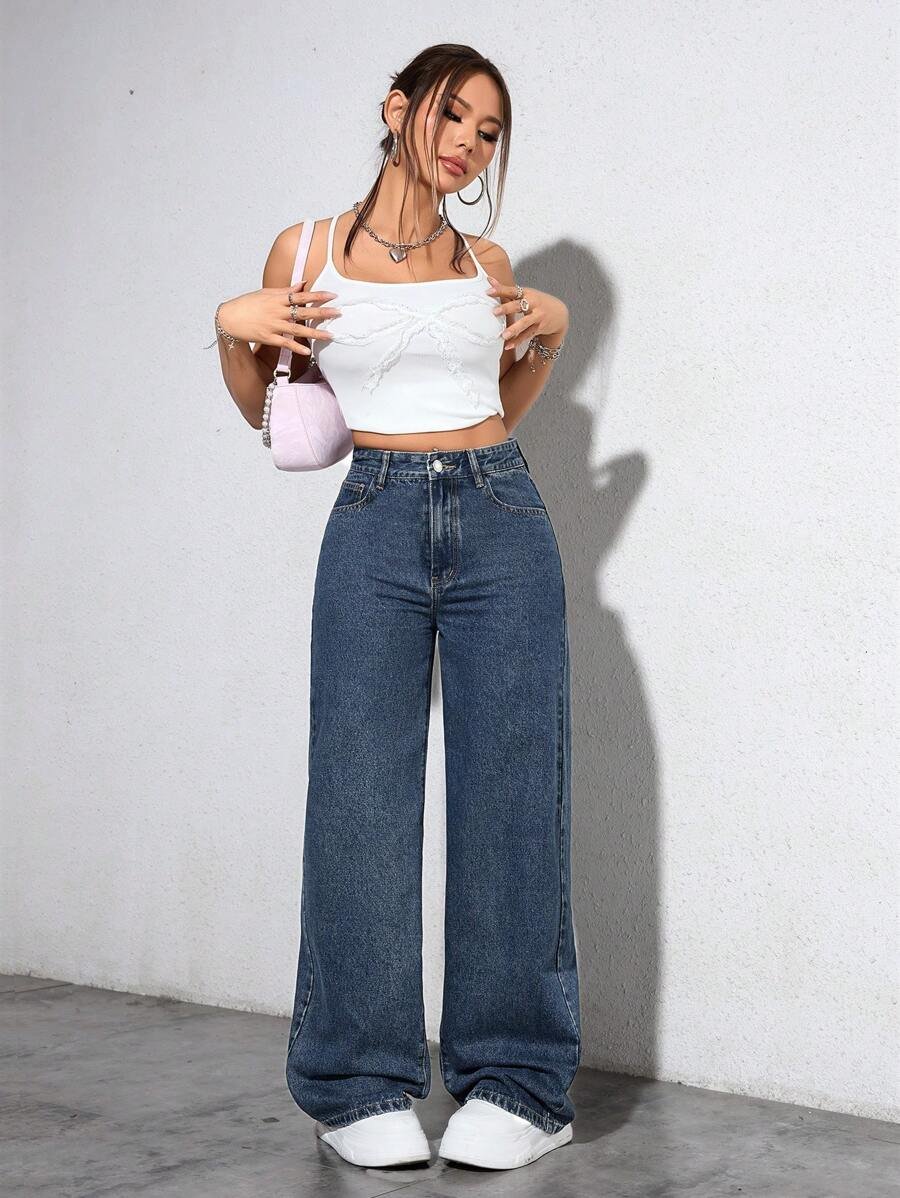 بنطلون جينز فضفاض بقصة رجلين واسعة